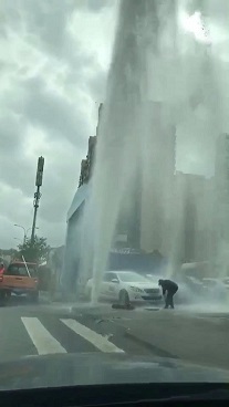 搶修人員到達(dá)現(xiàn)場(chǎng)后,發(fā)現(xiàn)消火栓已被撞斷,大量自來水噴涌而出,形成10多米高的水柱,附近道路積水嚴(yán)重,對(duì)附近學(xué)校人員的出行造成嚴(yán)重影響。搶修隊(duì)員在渾濁的閘閥井里摸索著關(guān)閉閥門,及時(shí)排除安全隱患,經(jīng)過近一個(gè)小時(shí)的搶修,11時(shí)許,完成搶修,恢復(fù)供水。